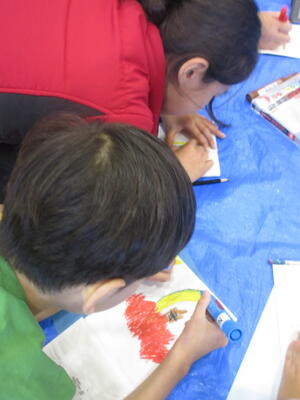 燈明作りを行いました。おうちの方も参加して楽しく自分らしく作品を作り上げていました。