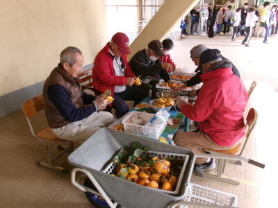 楽農会のみなさんに学校で採れた柿を使って「吊るし柿」をつくっていただきました。