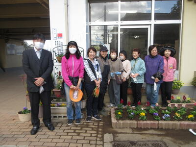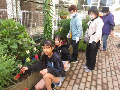 植える際は、民生児童委員の皆様だけでなく保護者ボランティアの方もいらっしゃいました。