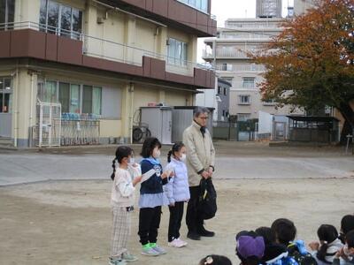 寒さが増してくるので、正門での保護者ボランティアの皆さんのあいさつ運動は今日が最終となります。