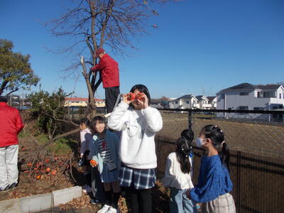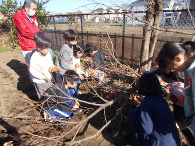 楽農会の方々が渋柿を収穫して、きれいに皮をむき、干していました。