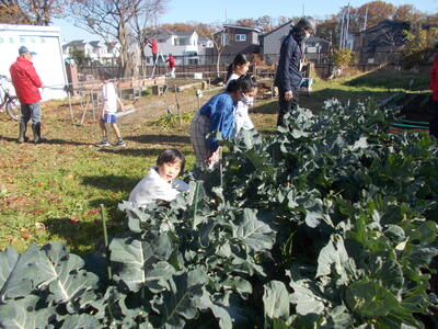 気持ちよく晴れた空の下、今日も楽農会の畑は大収穫・おおにぎわいです。