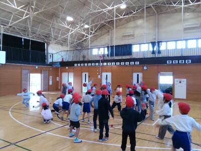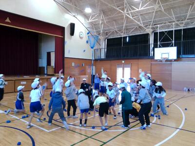懐かしの「チェッチェッコリ」の曲に合わせ、踊って投げて、楽しんでいました。