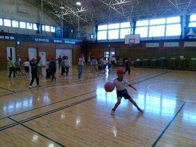 1時間目、校庭を元気に走っているのは4年生と6年生です。学級で声をかけあって仲良くどろけいをしています。