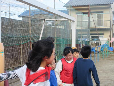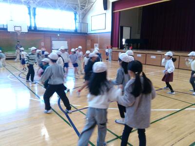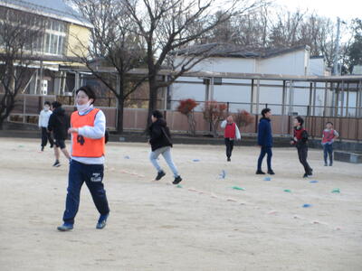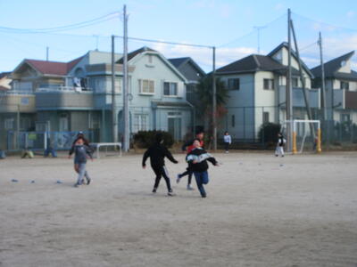 ゼッケンをつけているのが警察です。異学年での交流、寒さを感じさせないほど元気でした。
