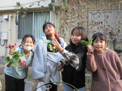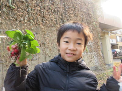 3年生が総合的な学習の時間に育てていたラディッシュが大きくなりました。