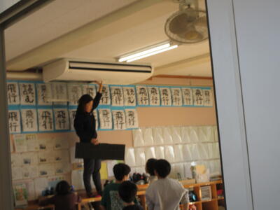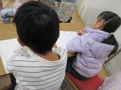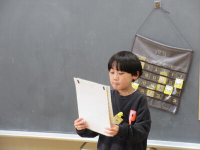 お教室をのぞくと、日直さんごっこの途中です。なんでも楽しでいて素敵です。