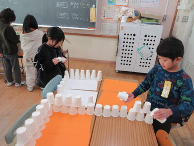 この授業のために担任の先生はお店を回って紙コップをたくさん用意したそうです。