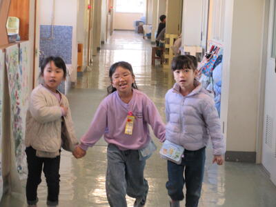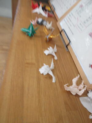 廊下で会った3組さんは今から相談室に折り紙を折りに行くところでした。