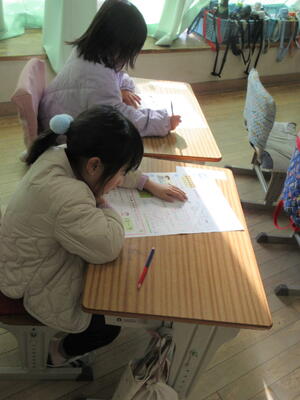 3時間目はテスト直しです。2学期もたくさんのお勉強をしました。先生からテストを返されて、すぐに解き直していました。学びにまっすぐですね。