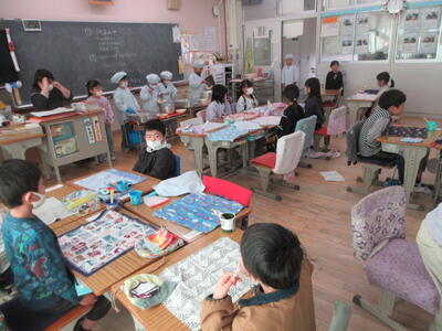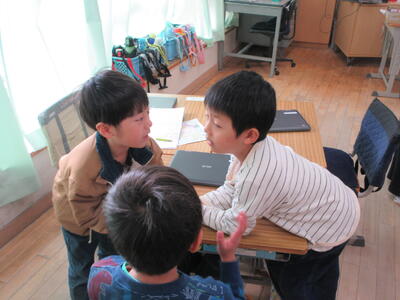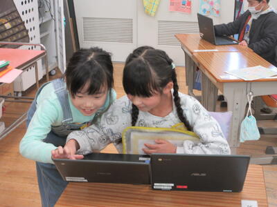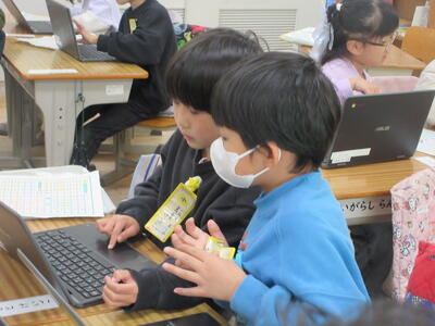 ワイワイと楽しそうですね。「ペットってどう入れるの?」とローマ字表を見ながら作っている子もいました。