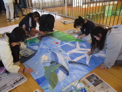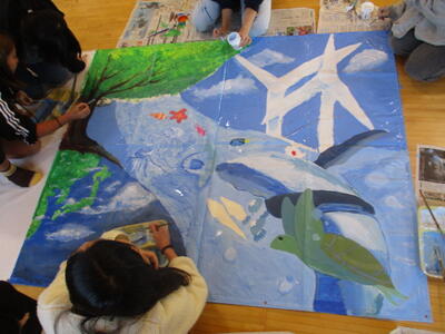子供たちと相談をして、学んだ内容を盛り込んだ壁画を作成しています。