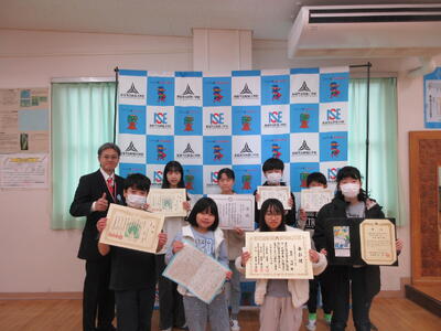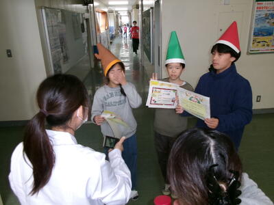 給食委員会の児童が片付けがきれいだったクラスに「感謝状」を配りました。