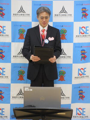 校長先生は2学期を振り返ってたくさんの「スマイルとチャレンジ」についてお話をされました。