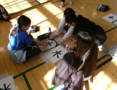 CAJの子を招待して、みんなで習字の学習を行いました。