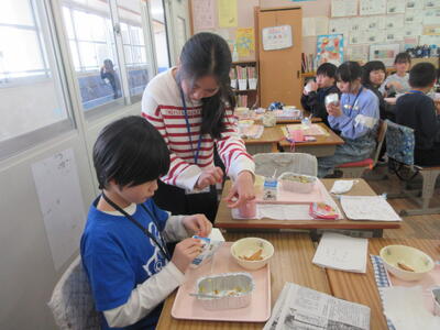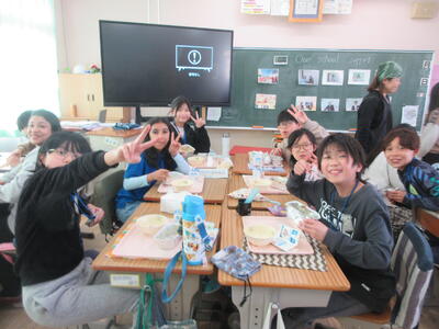 「CAJの子がおかわりしてくれた」「英語で話しながら食べた」「牛乳の開け方を教えてあげた」と交流のうれしかった話を聞けました。
