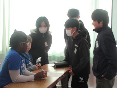 話すときの口の形から何といっているのかを予想し、耳が聞こえない立場を体験してみました。