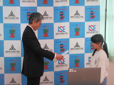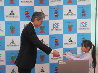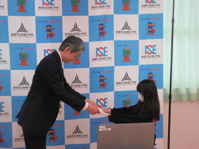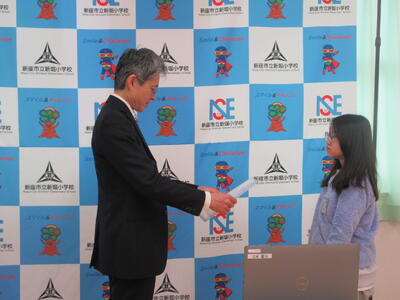 修了式では、学年代表児童が修了証を校長先生から受け取りました。