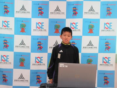 内容も素晴らしいものでしたが、自分の思いをまっすぐにモニターを見つめ、画面越しの全児童へ向けて話をしていました。長文を何も見ずにお話しする姿はみんなのお手本になりました。