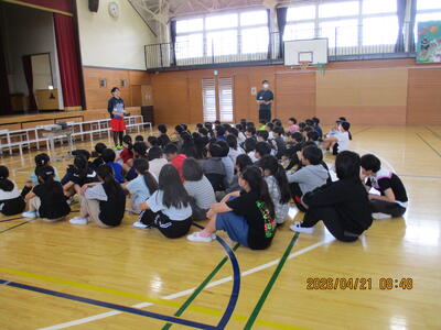 1年生は静かに聞いたり、質問へは手をあげたりと、よく見て答えていました。