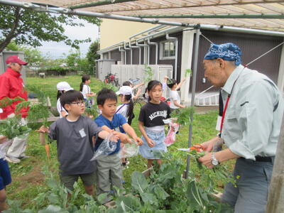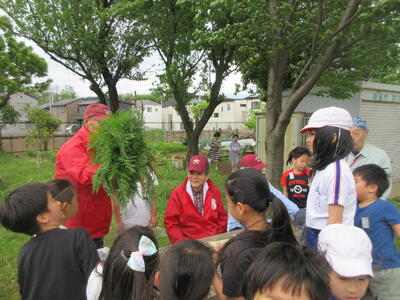 のらぼうなを知らない児童も多く、楽農会の皆さんから名前の由来を教えてもらいました。