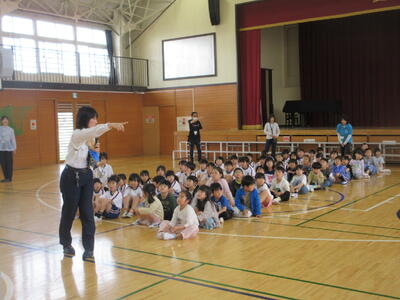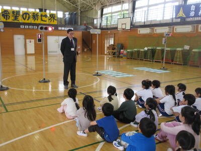 新座警察、新座市役所の方々が1年生に交通安全指導をしてくださいました。