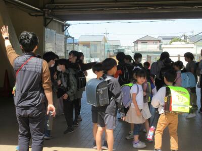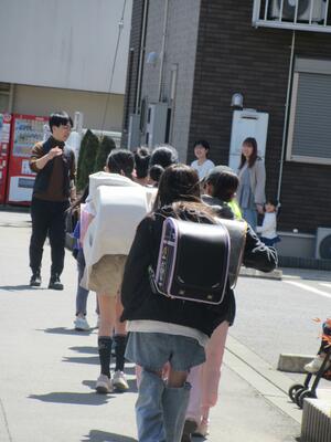班ごとに並び、担当の先生がついて下校していきます。1年生の保護者の方も迎えに来てくださり、安全な下校を学びました。