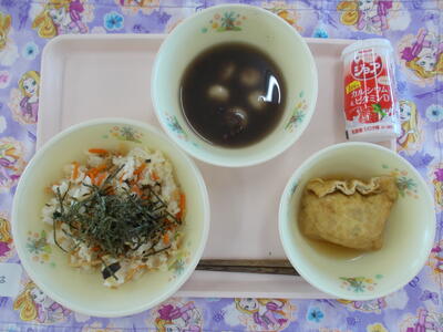 *こんだて ・ちらしずし ・ラッキーにんじん福袋 ・おしるこ ・ジョア(ストロベリー) |