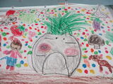 廊下にはかわいらしくカラフルな絵が飾ってあります。
