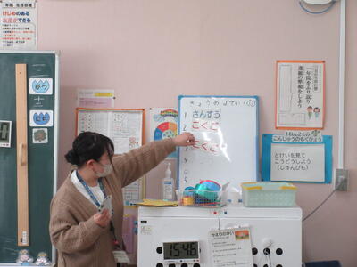 がんばった1日の最後は帰りの会です。日直さんが司会をして会を進めることもできるようになりました。