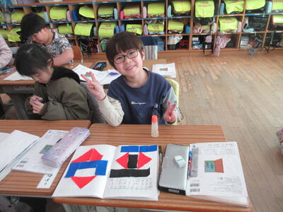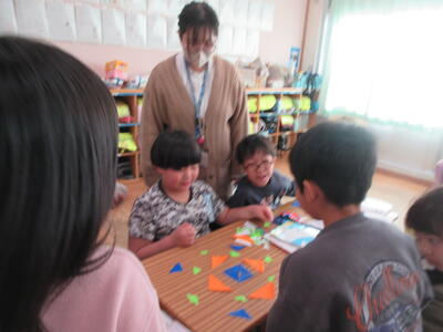 かたちを組み合わせていろいろな形を作っています。上手ですね。