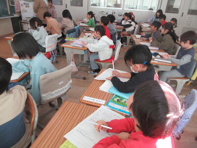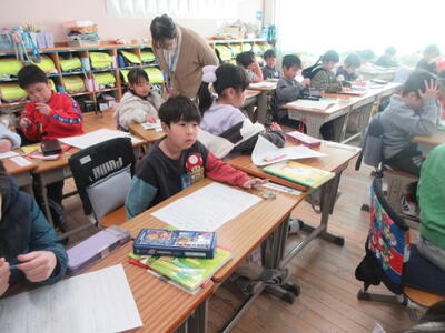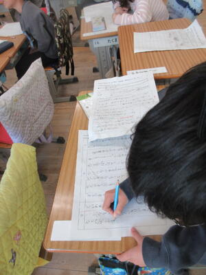 3時間目の国語は1年間で心に残ったことを書いています。よく思い出して、読む人にわかるように順序を考えて書いています。
