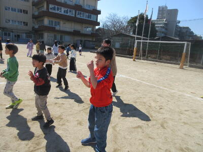 グループで相談して、練習をした動きをします。見ているお友達は歌で応援してあげます。