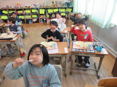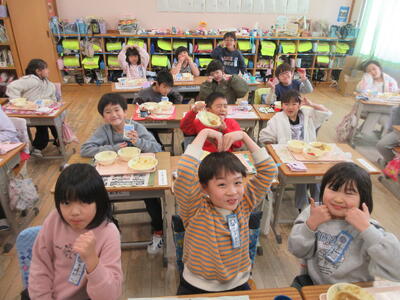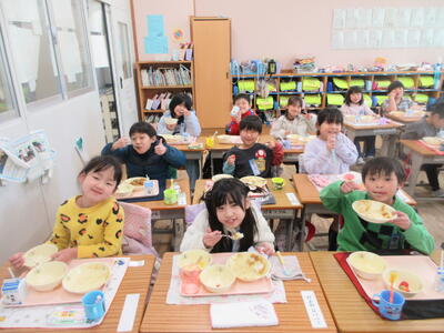 午前中が終わったらいよいよ給食です。今日はみんなの大好きなカレーライス。デザートにイチゴも付きます。