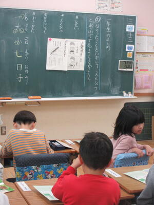 今日のスペシャルクラスの紹介は1年2組です。教室に近づくと今月の歌が聞こえました。とても元気よく素敵な歌声です。