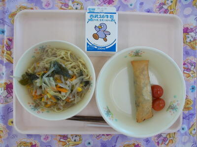 *献立 ・しおラーメン ・はるまき ・ミニトマト ・牛乳 |