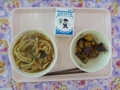 *献立 ・カレーうどん ・大学芋 ・牛乳 |